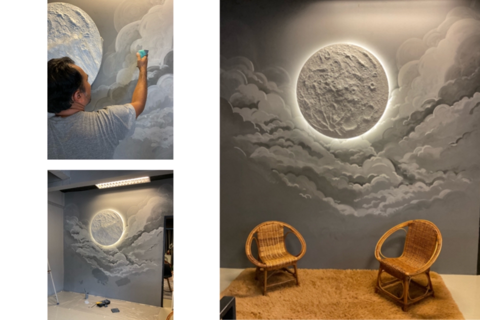 เพ้นท์ผนัง พื้น เพดาน ออกแบบตกแต่ง จัดการพื้นที่ทั้งพื้น ผนังและเพดาน ด้วยประสบการณ์ด้านการออกแบบและตกแต่ง จัดการกับพื้นที่ทั้ง เพ้นท์ผนัง พื้น รวมถึงงานโมเสคตกแต่ง สามารถให้คำปรึกษาสไตล์งานและออกแบบให้ตรงกับความต้องการและเข้ากับพื้นที่ของลูกค้า ปรับแก้แบบได้ 2-3 ครั้ง ก่อนทำการเพ้นท์ ขั้นตอนการทำงาน 1. ลูกค้าส่งข้อมูล ขนาดความกว้าง X ความสูงของผนัง และสไตล์งานเพื่อเป็นข้อมูลในการออกแบบ 2. เริ่มดำเนินการออกแบบ 3. นำส่งแบบ Artwork sketch 4. ลูกค้าสามารถแจ้งปรับแก้ได้โดยประมาณ 2-3 ครั้ง 5. หลังจากคอนเฟริมแบบและชำระค่ามัดจำเรียบร้อยแล้วจะนัดวันเข้าพื้นที่ 6. เข้าพื้นที่และจัดการเพ้นท์และติดตั้งโมเสค 7. หลังจากงานเพ้นท์แล้วเสร็จจะมีการแจ้งให้ลูกค้าทำการชำระเงิน ขั้นตอนการทำงาน 1. ลูกค้าส่งข้อมูล ขนาดความกว้าง X ความสูงของผนัง และสไตล์งานเพื่อเป็นข้อมูลในการออกแบบ 2. เริ่มดำเนินการออกแบบ 3. นำส่งแบบ Artwork sketch 4. ลูกค้าสามารถแจ้งปรับแก้ได้โดยประมาณ 2-3 ครั้ง 5. หลังจากคอนเฟริมแบบและชำระค่ามัดจำเรียบร้อยแล้วจะนัดวันเข้าพื้นที่ 6. เข้าพื้นที่และจัดการเพ้นท์และติดตั้งโมเสค 7. 7. หลังจากงานเพ้นท์แล้วเสร็จจะมีการแจ้งให้ลูกค้าทำการชำระเงิน