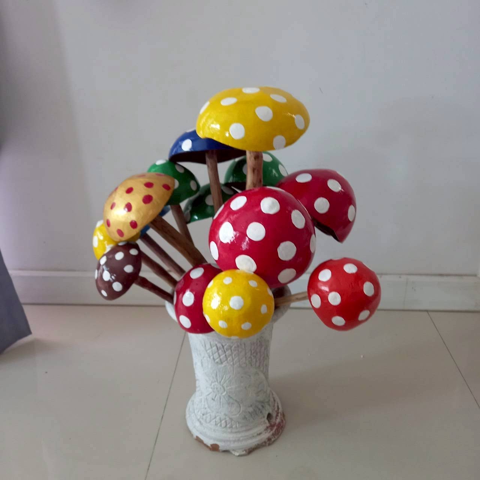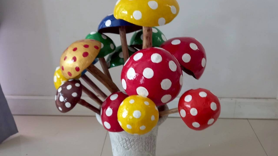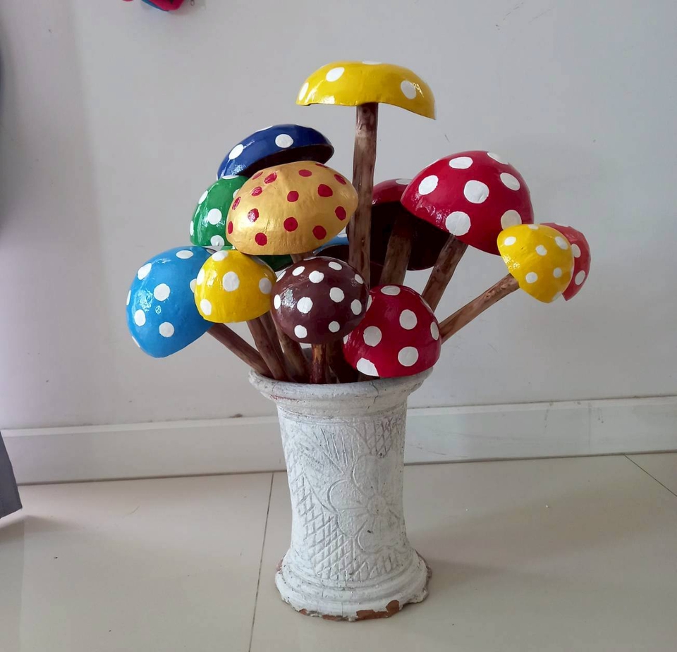 เห็ดขาเดี่ยว ทำจากกะลา แบบปัก