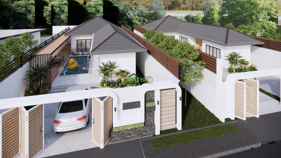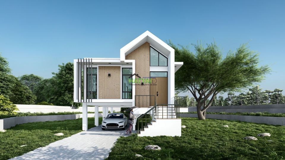 โดยผู้ว่าจ้างหารูปมาจากอินเตอร์เน็ต / ภาพที่ถ่ายรูปมาแล้วมาประยุกต์เป็นตัวเอง / ร่างในกระดาษมาให้ / ให้ทางเราออกแบบแปลนบ้านให้ ภายหลังจากที่ได้ตกลงเรื่องแบบแปลนผังห้องและภาพภายนอกบ้านแล้ว ทีมงานจะทำการตรวจสอบข้อมูลเบื้องต้นของโครงการใช้ในการจัดเตรียมเอกสารและเพื่อประกอบกับการเขียนแบบก่อสร้าง หลังจากที่ได้รับการอนุมัติเห็นชอบในรูปแบบของการวางผังอาคาร วางผังห้องในขั้นตอนการทำงานขั้นตอนแล้วทางทีมงานจะทำการพัฒนาแบบดังกล่าวลงไปในรายละเอียดแบบก่อสร้างโดยขึ้นรูป3D แบบภาพperspective (โมเดลสามมิติ)แสดงภาพรอบบ้าน หลังจากที่ได้รับการอนุมัติเห็นชอบในรูปแบบ3Dของอาคารแล้ว และอนุมัติในขั้นตอนแบบร่างครั้งสุดท้ายแล้ว ทางทีมงานจะนำแบบที่ได้รับอนุมัติ จัดทำแบบรายละเอียดตามที่ได้ระบุไว้ในขอบเขตของงาน ประกอบด้วย 1.2.1 แบบก่อสร้างจริง (กระดาษขาวขนาดกระดาษ A3 – จำนวน5 ชุด ) พร้อมสถาปนิกและวิศวกรลงนามรับรองการออกแบบ(เฉพาะบ้านที่มีขนาดเกิน150ตารางเมตรและมีคานยาวเกิน5เมตรหรือขนาด2ชั้นหรือเทศบัญญัติระบุมีรายละเอียดดังนี้ – แบบสถาปัตยกรรม – แบบวิศวกรรมโครงสร้าง – แบบวิศวกรรมไฟฟ้า – แบบวิศวกรรมสุขาภิบาล รวมแบบแปลนแยกเป็นหมวดหมู่ต่างๆ รวมจำนวนแผ่นประมาณ 40แผ่น ขั้นตอนการทำงาน 1. ลูกค้าแจ้งขอบเขตงาน จำนวนชั้น จำนวนห้อง สไตล์ของบ้านเพื่อเสนอราคา โดยผู้ว่าจ้างหารูปมาจากอินเตอร์เน็ต / ภาพที่ถ่ายรูปมาแล้วมาประยุกต์เป็นตัวเอง / ร่างในกระดาษมาให้ / ให้ทางเราออกแบบให้ 2. ออกใบเสนอราคา หากพิจารณาใบเสนอราคาแล้วตกลงก็สามารถเริ่มงานได้ทันที โดยผู้ว่าจ้างต้องมัดจำค่างานตามงวดงานที่กำหนดในระบบของราคางานทั้งหมด 3. เขียนแบบแปลนพื้นภายหลังจากที่ได้ตกลงเรื่องแบบแปลนผังห้องแล้ว 4. วางผังห้องในขั้นตอนการทำงานขั้นตอนแล้วทางทีมงานจะทำการพัฒนาแบบดังกล่าวลงไปในรายละเอียดแบบก่อสร้างโดยขึ้นรูป3D แบบภาพperspective (โมเดลสามมิติ)แสดงภาพรอบบ้าน 5. เขียนแบบขออนุญาตก่อสร้างประกอบด้วย 1.แบบสถาปัตยกรรม 2.แบบวิศวกรรมโครงสร้าง 3.แบบวิศวกรรมไฟฟ้า 4.แบบวิศวกรรมสุขาภิบาล