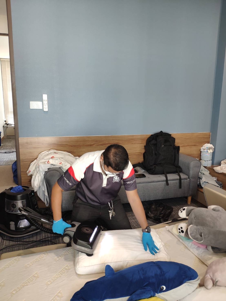 บริการดูด กำจัดไรฝุ่นเตียงนอน หมอน โซฟา ผ้าม่าน คุ้มค่า เห็นผลทันทีตั้งแต่ครั้งแรกที่ทำ เห็นความแตกต่างอย่างชัดเจน "ไรฝุ่นเป็นล้านๆชีวิต อยู่บนที่นอนเดียวกับคุณ" แก้ปัญหาสุขภาพด้านการนอนไม่หลับ นอนแล้วคัน หายใจไม่สะดวก หายใจออกรูเดียว น้ำมูกไหล ภูมิแพ้ระบบทางเดินหายใจ เหมาะสำหรับเด็กเล็ก ผู้สูงวัย คนเลี้ยงสัตว์ พื้นที่ให้บริการ กรุงเทพ นนทบุรี ราชพฤกษ์ ปทุมธานี ขั้นตอนการทำงาน 1. สำรวจพื้นที่ก่อนทำบริการ และแจ้งรายละเอียดการทำบริการให้กับลูกค้า 2. ปฎิบัติงานด้วยความเป็นมืออาชีพ 3. รายงานผลการทำบริการทั้งหมด เป็นเอกสารและภาพถ่าย