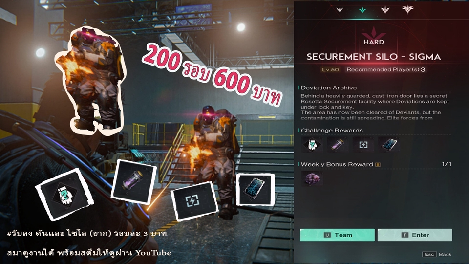 ฿600สิ่งของที่ได้ระหว่างลงดันเจี้ยนรวมถึงเงินภายในเกม และmod หากช่องmodของลูกค้าเต็มทางเราจะทำการคัดmodให้ขั้นต่ำดังนี้ (เขียว 4)(ฟ้า1เขียว2ขาว1)(ฟ้า2ขาว2)(ม่วง1เขียว1ขาว1)