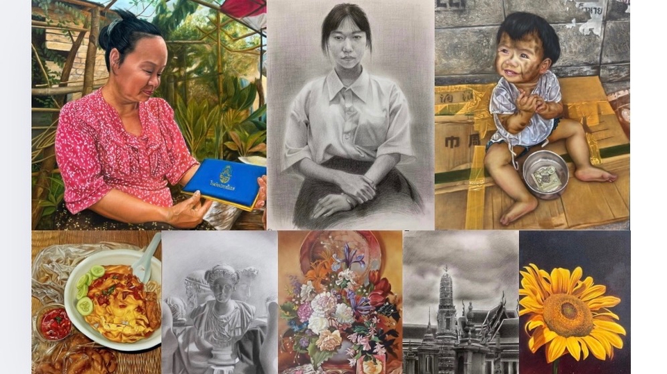 วาดภาพสีน้ำมันและดรออิ้งเหมือนจริง portrait,คนเต็มตัว,อาหาร,หุ่นนิ่ง,ดอกไม้,อื่นๆ