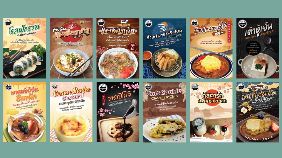 ออกแบบกราฟิกแบนเนอร์ทุกขนาด ราคาเริ่มต้น 500 บาท Facebook Cover Page / Banner ราคาเริ่มต้นที่ 350 บาท ตามขนาดและรายละเอียดของภาพใช้เวลาประมาณ 1-2 วัน Leaflet / Brochure เริ่ม1,000 1.แจ้งการใช้งานว่าจะใช้สำหรับโปรโมทออนไลน์ หรืองานปริ้นท์ 2. อธิบายแบบที่ต้องการ หรือพร้อมแนบตัวอย่างที่อยากได้ พร้อมทั้งข้อความที่จะใส่ลงในงาน 3. หากมีภาพประกอบยินดีรีทัช แก้ไขให้สวยขึ้นด้วยตามต้องการ (ขอคิดค่าบริการเพิ่มเล็กน้อยตามความยาก-ง่าย) 4. ส่งงานให้ลูกค้า เพื่อแก้ไขได้จนกว่าจะพอใจ รายละเอียดราคาเพิ่มเติม ออกแบบโปสเตอร์ทั้งงาน โฆษณา สินค้า อีเว้นท์ เมนูอาหาร ออกแบบทั้งสำหรับงานปริ้น (ไวนิล วิวบอร์ด ป้าย) และงาน Online ขั้นตอนการทำงาน 1. ลูกค้าแจ้งรายละเอียดความต้องการ และส่งไฟล์งานที่ใช้ประกอบการออกแบบ 2. ออกแบบตามบรีฟ และส่งงานให้ตรวจสอบ ปรับแก้ไข 3. สรุปงาน ส่งไฟล์งาน
