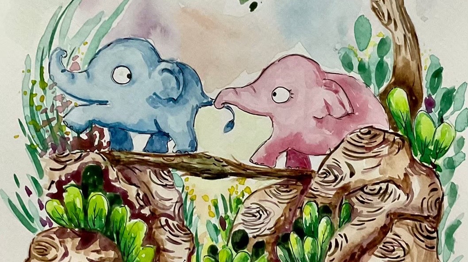 วาดภาพประกอบสีน้ำการ์ตูนน่ารัก