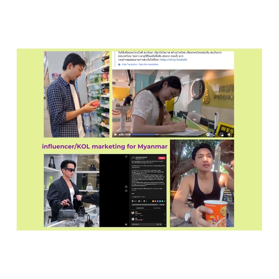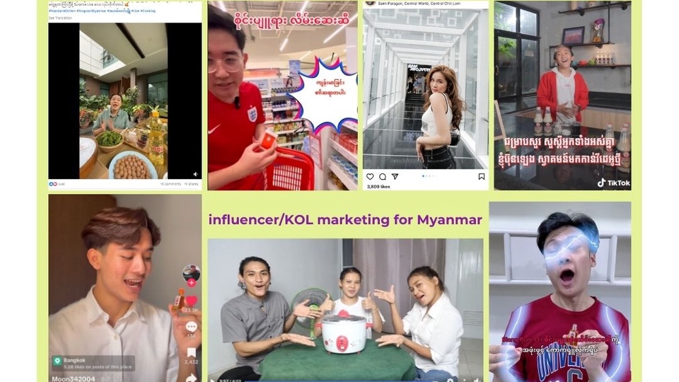 Package : งานรีวิว Influencer/KOL ในตลาด พม่า (ทั้งในไทย หรือ ในเมียนมาร์๗ & กัมพูชา