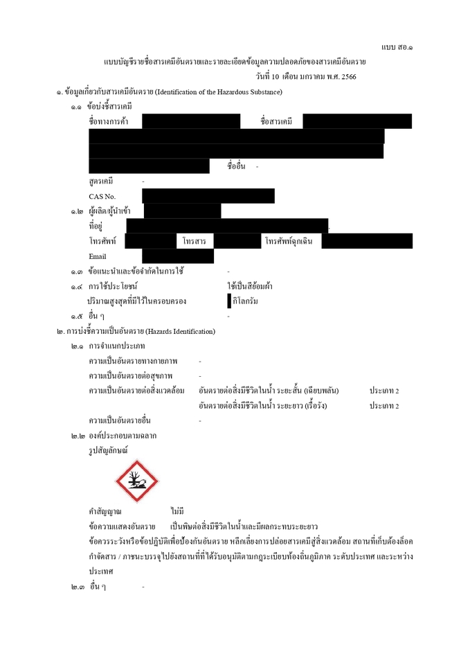 จัดทำสอ.1และจัดทำฉลากสารเคมีผลิตภัณฑ์ตามระบบ GHS