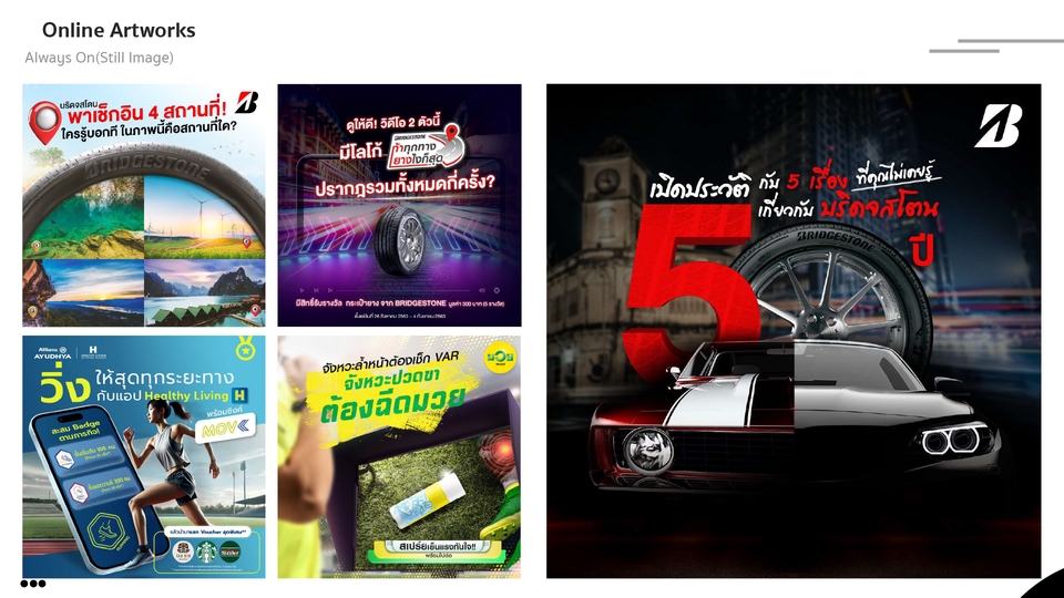 ฿5,000จำนวนไม่เกิน 5 คอนเทนต์ ออกแบบ Artworks สำหรับ Online Content - Set A : จำนวน 5 ภาพ (จำกัดแค่ 1 ไซส์) - Set B : จำนวน 3 ภาพ + 1 อัลบั้ม - Set C : จำนวน 2 ภาพ + 2 อัลบั้ม *จำนวนภาพไม่เกิน 5 ภาพ/อัลบั้ม **Resize(ปรับเพิ่มขนาด) คิดเพิ่ม 400 ต่อ 1 ไซส์ Platforms - Facebook (Banner | Online Content | Ads) - Line (OA | Voom) - IG หมายเหตุ *ไดคัท, รีทัช และตัดต่อตกแต่งภาพ ได้รับไฟล์ต้นฉบับ **งานทุกชิ้นใช้โปรแกรมและ photostock แบบถูกลิขสิทธิ์**