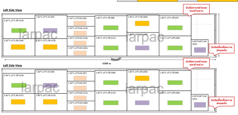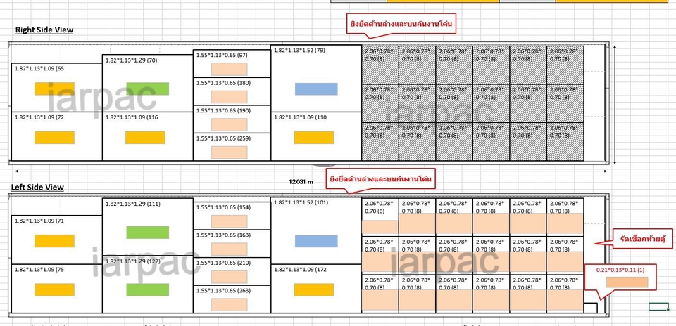 วางแผนและจัดวางสินค้าภายในตู้คอนเทนเนอร์ขนาด 20'DRY, 40'DRY และ 40'HC จัดการพื้นที่ภายในตู้คอนเทนเนอร์อย่างมีประสิทธิภาพ เพื่อให้สามารถขนส่งสินค้าได้อย่างปลอดภัยและคุ้มค่า ขั้นตอนการทำงาน 1. ขอข้อมูลรายละเอียดสินค้า 2. ข้อกำหนดข้อห้ามต่างๆ ตามความต้องการลูกค้า 3. ออกแบบต่อตู้ใช้เวลา 1-2 วัน แล้วแต่ความยากง่าย
