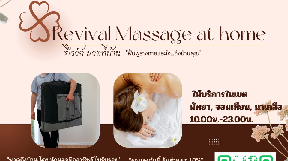 🧘♀️ Revival Massage at Home – นวดถึงบ้าน พัทยา จอมเทียน นาเกลือ ให้บริการนวดไทย นวดอโรม่า และนวดเพื่อสุขภาพถึงบ้าน โดยทีมหมอนวดมีใบอนุญาตถูกต้อง มีประสบการณ์มากกว่า 5 ปี 📍บริการเฉพาะในพื้นที่พัทยา จอมเทียน นาเกลือ 🕙 เวลาให้บริการ: 10.00 - 23.00 น. ✅ ปลอดภัย มีอุปกรณ์พร้อม ให้บริการถึงหน้าบ้าน ✅ เลือกหมอนักนวดได้ ✅ จองสะดวก รวดเร็ว รับโปรลดพิเศษทันที