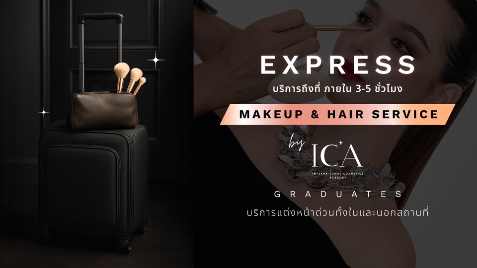 การจะดูไร้ที่ติไม่เคยง่ายขนาดนี้ บริการด่วนของเรานำความงามระดับมืออาชีพส่งตรงถึงคุณ ไม่ว่าจะเป็นการถ่ายภาพด่วน, งานอีเวนต์สำคัญ, ดินเนอร์หรูหรา หรือแค่วันที่คุณอยากสวยที่สุด - เมคอัพจัดเต็ม: ออกแบบเฉพาะใบหน้าและอีเวนต์ของคุณ (ธรรมชาติ, ซอฟต์แกลม, โดดเด่น, แฟชั่น, หรือพร้อมสำหรับพรมแดง) - ทำผมเข้ากับลุค: ตั้งแต่เกล้ามวยสุดเนี้ยบไปจนถึงผมลอนคลายสบายๆ สไตล์ Beachy Waves - รวดเร็วทันใจ: พร้อมสวยภายใน 3–5 ชั่วโมง หลังจากการจอง - บริการถึงที่: เราไปหาคุณที่โรงแรม, ออฟฟิศ, บ้าน หรือสถานที่ที่คุณสะดวก (ขึ้นอยู่กับความพร้อมให้บริการ) - ผลิตภัณฑ์หรูหรา: ใช้เฉพาะผลิตภัณฑ์จาก Limboss Cosmetics – แบรนด์เครื่องสำอางพรีเมียมของสิงคโปร์ โบนัสพิเศษ: รับเวาเชอร์แลกผลิตภัณฑ์ Limboss สุดหรู พร้อมเคล็ดลับการจัดแต่งทรงผมให้สวยพร้อมถ่ายภาพ เหมาะสำหรับ: ถ่ายภาพ, ออกสื่อ, แฟชั่นโชว์, งานพรมแดง, งานเลี้ยงองค์กร, งานกาล่า, วันเกิด, เดท, ปาร์ตี้ส่วนตัว และทุกวันที่คุณอยากรู้สึกเปล่งประกายไม่หยุดยั้ง บริการของเราดำเนินการโดย ICA Makeup Academy สถาบันชั้นนำด้านศิลปะการแต่งหน้ามืออาชีพแห่งเอเชีย ทีมงานของเราได้รับการฝึกฝนจากเมคอัพอาร์ติสชื่อดังและผู้เชี่ยวชาญในวงการแฟชั่น จึงมั่นใจได้ในมาตรฐานระดับโลกทุกครั้งที่ใช้บริการ ______________________________________________________________________________________________________________ Get Glamorous: Anytime, Anywhere Achieve a flawless look effortlessly. Our express service brings professional glam directly to you, perfect for last-minute photoshoots, high-profile events, elegant dinners, or any day you want to feel your most beautiful. - Full Makeup Look: Tailored to your face and event (natural, soft glam, bold, editorial, red-carpet-ready). - Complementary Hair Styling: From sleek buns to beachy waves. - Quick Turnaround: Ready in just 3–5 hours from booking. - Convenient Location: We come to your hotel, office, home, or preferred spot (subject to availability). - Luxury Products: Exclusively using Limboss Cosmetics – Singapore’s premium makeup brand. Bonus: Product vouchers for Limboss luxury cosmetics + styling tips for photo-ready beauty. Perfect For: Photoshoots, media appearances, fashion shows, red carpet events, corporate galas, birthdays, date nights, private parties, and every day you want to feel unstoppable. Our services are performed by top graduates of ICA Makeup Academy, Asia’s leading institution for professional makeup artistry. Trained by celebrity artists and industry experts, our team delivers world-class standards every time.