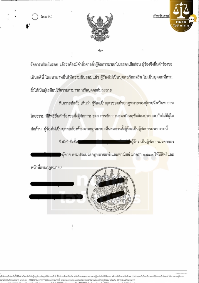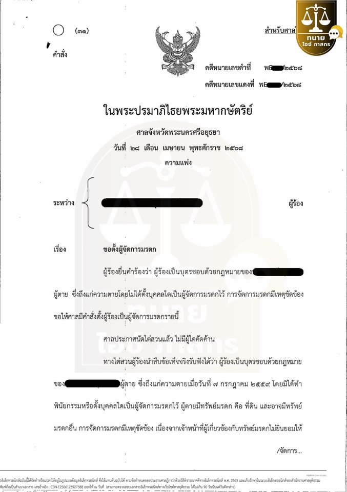 คดีจัดการมรดก | ทนายความ ที่ปรึกษากฎหมาย ตั้งผู้จัดการมรดก คัดค้านผู้จัดการมรดก กฎหมายครอบครัว สัญญา