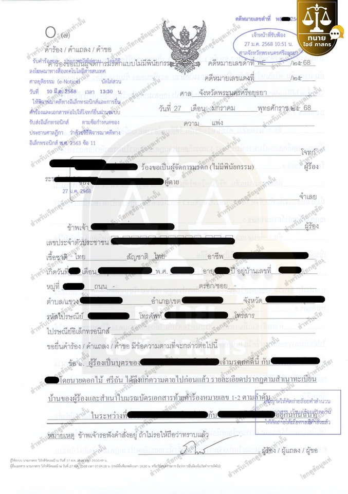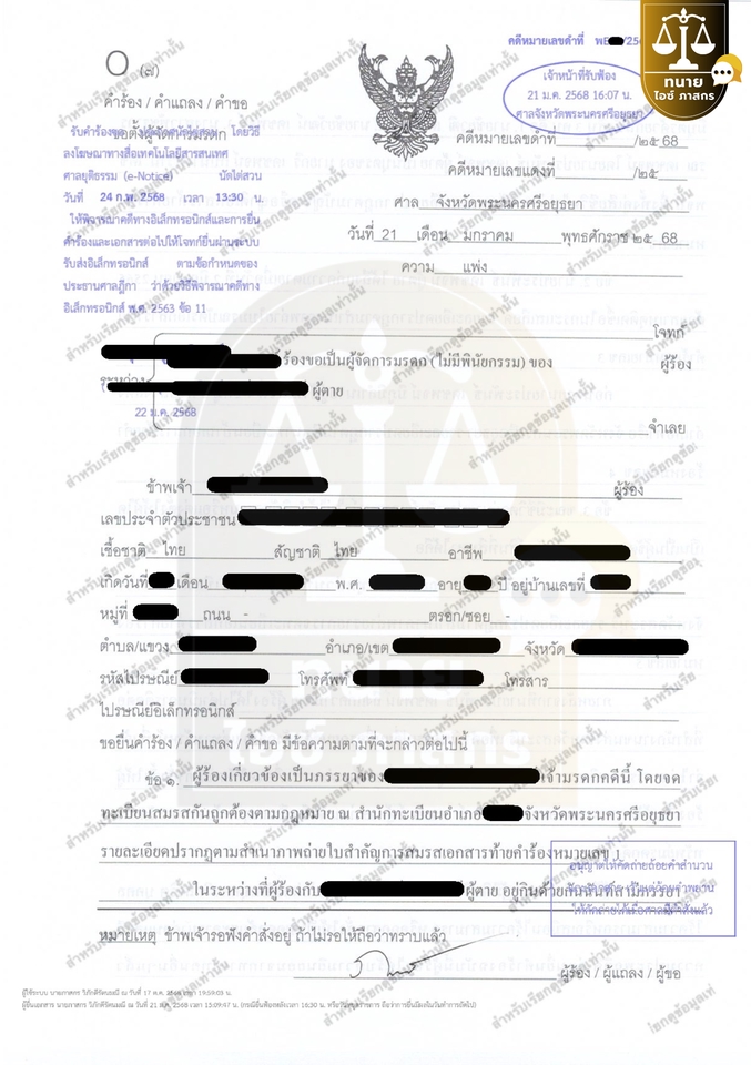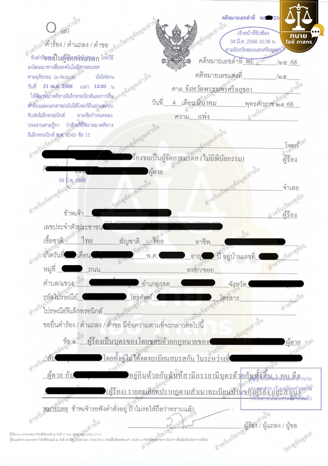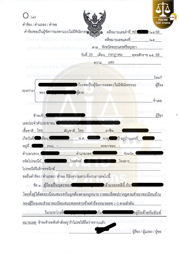 รับเขียนคำร้องขอเป็นผู้จัดการมรดกหรือคำคัดค้านผู้จัดการมรดก