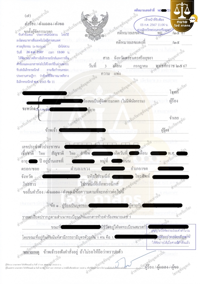 - • 3. ท่านมาศาลแค่เพียงวันที่ไต่สวนคำร้องต่อศาลเท่านั้น (เว้นแต่ในกรณีที่ไม่จบภายในวันเดียว)