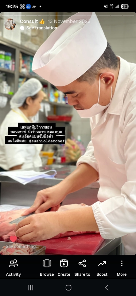 เชฟผู้ชํานาญด้านการทําอาหารญี่ปุ่นมากกว่าสิบปี สําเร็การศึกษาจากสถาบันสอนทำอาหารญี่ปุ่นจากประเทศญี่ปุ่น ชำนาญอาหารญี่ปุ่นทุกประเภทตั้งแต่โฮมคุกไปจนถึงวางโครงสร้างร้านอาหารญี่ปุ่น