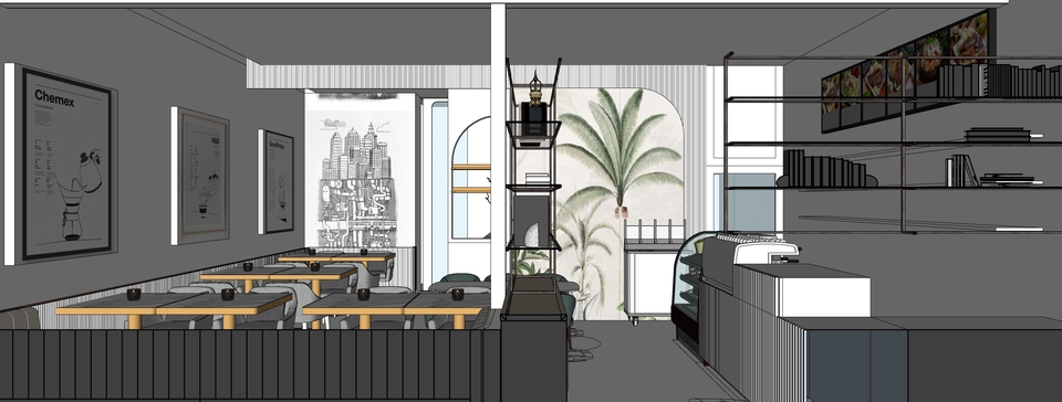 การออกแบบร้านกาแฟสไตล์ Minimal Botanical ร้านกาแฟนี้โดดเด่นด้วยสไตล์ Minimal Botanical ที่ผสมผสานความเรียบง่ายและความสดชื่นของธรรมชาติ โดยเน้นการใช้โทนสีเอิร์ธโทน เช่น ขาว เทา และเขียว พร้อมการตกแต่งด้วยพืชพรรณและวัสดุธรรมชาติ จุดเด่น: โซนด้านหน้า: กระจกใสบานใหญ่เชื่อมโยงภายในและภายนอก ตกแต่งด้วยต้นไม้และป้ายเมนูในสไตล์มินิมอล โซนภายใน: ใช้เฟอร์นิเจอร์ไม้และเบาะผ้าสีธรรมชาติ พร้อมตกแต่งผนังด้วยลายพืชและภาพศิลปะสไตล์ botanical เคาน์เตอร์และชั้นวาง: ออกแบบให้เรียบง่าย ใช้วัสดุไม้และโลหะพร้อมการจัดวางต้นไม้ขนาดเล็กเพิ่มความสดชื่น แสงและบรรยากาศ: ผสมผสานแสงธรรมชาติและไฟ Warm Light สร้างความอบอุ่นและสดใส การออกแบบนี้สะท้อนถึงความสงบ เรียบง่าย และผ่อนคลาย เหมาะสำหรับการพักผ่อนหรือทำงานในบรรยากาศธรรมชาติที่ลงตัว 😊 ขั้นตอนการทำงาน 1. นัดดูหน้างาน และนัดวัดพื้นที่ ตามหน้างานจริง หรือทางลูกค้าส่งรายละเอียดเบื้องต้นมาให้ และคุยรายละเอียดเบื้องต้นเพื่อเสนอ professional fee 2. รับบรีพ งานและ conceptual design จากทาง owner 3. ทำการ sketch design โดยเริ่มจาก function layout plan ก่อน ปรับจนได้พื้นที่ใช้งานที่เหมาะสมก่อนขึ้นงาน sketch design 4. sketch design ครั้งแรก เพื่อเช็คระยะและ สัดส่วนที่สวยงามรวมถึง วัสดที่เลือกใช้และสี เบื้องต้น 5. sketch design ครั้งที่สองหลังจากสรุปแบบจากครั้งแรก เพื่อขึ้นงาน 3D rendering เพื่อดูเรื่องสีของวัสดุต่างๆใกล้เคียงวัสดุจริง 6. ส่งมอบงาน 3d rendering ที่เสร็จสมบูรณ์ 7. shop drawing เพื่อเช็คระยะที่เหมาะสมกับการใช้งาน และ เพื่อความถูกต้องเพื่อส่งต่อให้ทีมผู้รับเหมา ทำงานต่อไป