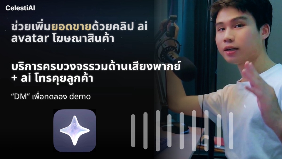 เทรนเสียงพากย์ของคุณให้เป็นเสียง AI พร้อมคุณภาพระดับ Studio เหมาะสำหรับวิดีโอ โฆษณา คอนเทนต์โซเชียล รองรับหลายภาษา ให้เสียงสมจริง พร้อมใช้งานภายในไม่กี่นาที ขั้นตอนการทำงาน 1. ติดต่อสอบถาม 2. เตรียมเสียงพากย์ไฟล์นามสกุล .wav หรือ .mp3 อย่างน้อย 10 นาที จากนั้นให้ทำการอัพโหลดไปที่ google drive และส่งลิงค์เสียงให้กับทางเรา