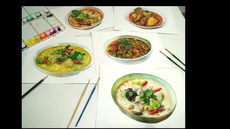 รับวาดภาพประกอบสีน้ำและเทคนิคสีอื่นๆตามที่ท่านต้องการ เพื่อใช้ประกอบเมนูอาหาร วัตถุดิบเครื่องปรุงสมุนไพร หุ่นนิ่ง แผนที่ ๚ล๚ รับวาดภาพ drawing สำหรับติดตั้งภายในอาคาร *ผลงานขนาด a4 ราคาเริ่มต้นที่ 650 บาท **ราคาและขนาดจะเพิ่มขึ้นตามรายละเอียดและความยากง่ายของผลงานค่ะ **ถ้าเป็นงานเร่งรบกวนคุณลูกค้ากรุณามีแบบมาให้พร้อมวาดเพื่อความรวดเร็วในการทำงานด้วยนะคะ^^ ***ขออนุญาตไม่รับวาดรูปคนรูปสัตว์,หมูและสุนัขนะคะ รายละเอียดราคาเพิ่มเติม *ถ้าคุณมีแบบมาให้เลยคิดราคาปกติเริ่มต้นที่ 650 ขึ้นไป หากไม่มีแบบมาให้ขออนุญาตคิดราคาเพิ่ม 200 บาทขึ้นไปตามความยากง่ายของงานนะคะ ##ราคางานขึ้นอยู่กับขนาด ความยากง่ายและรายละเอียดของงานค่ะ *ถ้าคุณลูกค้าแก้งานในขั้นตอนการร่างภาพเกิน1ครั้งขอคิดราคาเพิ่ม 100 บาทนะคะ * ในขั้นตอนการสอบถามรายละเอียดงานเพื่อสอบถามราคาเมื่อทางเราเห็นแบบและเสนอราคาไปแล้ว ถ้าคุณค้าต้องการเปลี่ยนแบบขออนุญาตเสนอราคาใหม่นะคะ ขั้นตอนการทำงาน 1. ถ้าสนใจในงาน stylesของพี่ ขอนุญาตลูกค้าทุกท่านส่งแบบและรายละเอียดงานมาให้พี่ดูได้เลยนะคะ^^**ในขั้นตอนนี้ขออนุญาตแนะนำว่าควรใช้ความชื่นชอบในstyles ผลงาน และความเข้าใจในการทำงานของฟรีแลนซ์ก่อนการเลือกจ้างด้วยนะคะ^^ 2. เริ่มต้นคุยรายละเอียดงาน ส่งแบบsketchที่ลูกค้าต้องการให้วาด เพิ่มเติมงาน แก้ไขปรับปรุงงานในขั้นตอนนี้ได้เลยนะคะ เมื่อได้แบบที่ต้องการตามที่ตกลงกันไว้ให้วาดแล้ว พี่จะขออนุญาตส่งใบเสนอราคานะคะ ** เนื่องจากเทคนิคเป็นงานสีน้ำสไตล์งานของพี่เองและเพื่อป้องกันการเกิดปัญหาระหว่างการว่าจ้าง พี่จะขออนุญาตคุยงานและร่างแบบsketchก่อนส่งใบเสนอราคานะคะ^^ 3. สงสีหรือลงเทคนิคต่างๆบนผลงานจริงตามแบบที่ตกลงกันไว้ ในขั้นตอนนี้พี่ขออนุญาตว่าไม่สามารถแก้งานได้แล้วนะคะ^^
