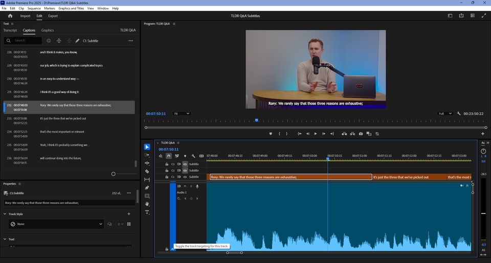 ฿500บทบรรยายใต้ภาพ (ซับไตเติล) ไม่ว่าจะเป็นในรูปแบบไฟล์ (SubRip, WebVTT, TTML) หรือภายในวิดีโอผ่าน Adobe Premiere Pro
