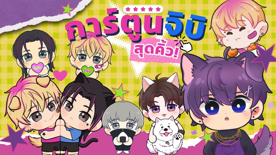 รับวาดภาพการ์ตูนจิบิ สไตล์น่ารักๆ หรือสัตว์ สิ่งของ ⚠ เชิงพาณิชย์x2 , giveaway x1.5 งานนี้เหมาะสำหรับคุณลูกค้าที่... 1.นำสำหรับใช้ส่วนตัว เช่น โปรไฟล์ใช้ส่วนตัว ,งานรับปริญญา ,GIVEAWAY 2.งานใช้เชิงพาณิชย์ เช่น การผลิตสินค้าเพื่อการค้าขาย , ของแถมสินค้า *กรณีนี้มีบวกราคาคูณ2นะคะ รายละเอียดงานและข้อตกลง - ชิ้นงานจะมีขนาด 24048*2048px (หรือตามที่ลูกค้ากำหนด) - สามารถแก้ไขได้ไม่เกิน 3 ครั้ง เกินนี้บวกเพิ่มตามความเหมาะสม - กรณีงานเสร็จเกิน 80% แล้วขอยกเลิก ทางเราขอไม่คืนเงินทั้งสิ้นนะคะ ***** งานทุกชิ้นจะเป็นลายเส้น+การลงสีสไตล์เรา ขอไม่รับงานที่มีเลียนแบบนักวาดท่านอื่นค่ะ ขั้นตอนการทำงาน 1. คุณลูกค้าต้อวส่งบรีฟมาให้ทางเราเช็คก่อนได้นะคะ 2. หลังจากดูบรีฟ ทางเราจะเช็ครายละเอียดของงานและสร้างใบเสนอราคา 3. คุณลูกค้าชำระเงินเรียบร้อยแล้ว ทางเราจะรีบส่งสเกตคร่าวๆให้ดู ***ขั้นตอนนี้แก้แบบได้ 4. หลังจากได้สเกตแบบไฟนอล จะเริ่มตัดเส้น+ลงสี 5. ให้คุณลูกค้าเช็คงาน ***สามารถแก้ในส่วนลงสีได้ 6. ทำไฟล์ เตรียมส่งงานให้คุณลูกค้า