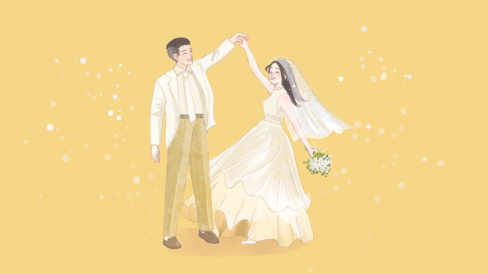 ภาพวาด บ่าวสาว และรายละเอียดบนการ์ด