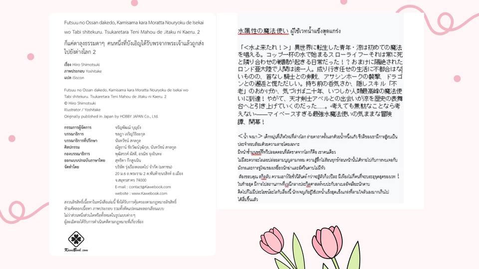 นักศึกษาจบใหม่จากเอกญี่ปุ่น ภาษาญี่ปุ่น N3 ภาษาอังกฤษระดับ B2 เกียรตินิยมอันดับ 1 เคยฝึกงานที่สำนักพิมพ์ 3 เดือน ได้ทำหน้าที่ทั้งการแปล การพิสูจน์อักษร จัดวางรูปแบบตัวอักษร การเลือกรูปแบบฟอนต์