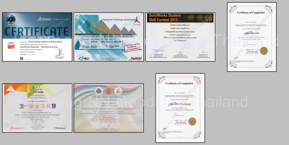 ประสบการณ์ด้านการเขียนแบบเครื่องกล และ การสั่งงานผลิตชิ้นงานจริง เพื่อใช้งานได้จริง มากกว่า 10 ปี สามารถเขียนแบบและออกแบบ พร้อมรับผลิตชิ้นงานจริงตามแบบลูกค้า CNC / WIre Cut / EDM / Super Drill / เจียระไนราบ / ชุบแข็ง S50C , SKD11 , K110 งานเกี่ยวกับ CAD2D - CAD3D - Assembly - Simulation - Finite Element(FEA) - Exploded - Drafting - Bill of Material - Progressive Die - Single Die - CAM Milling