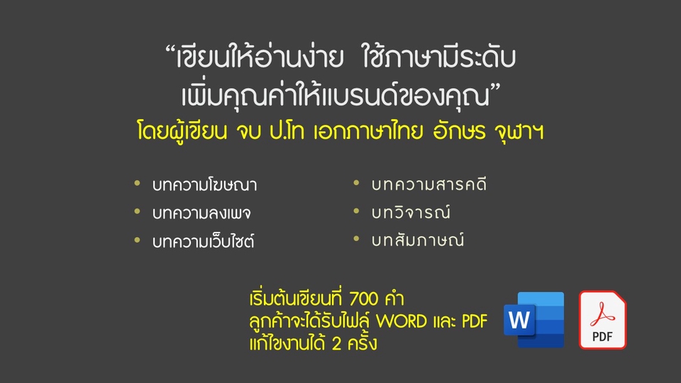 รับเขียนคอนเทนต์ บทความ คำโฆษณา พิสูจน์อักษร อ่านและแก้ไขภาษา แต่งคำประพันธ์ งานประจำเป็นอาจารย์ ติวเตอร์ ทำช่องยูทูบ "ติวไทยไฟลนก้น"
