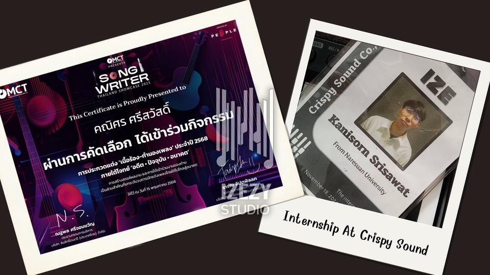 ทำเพลง / บันทึกเสียง / IZEZY STUDIO สวัสดีครับ ผม "ไอซ์" ปัจจุบันเป็นศิลปินอิสระและโปรดิวเซอร์ครับ ในฐานะศิลปินเดี่ยวชื่อ "IZEZY" และฐานะสมาชิกวงดนตรี "Tales The Truth" เรียนจบจาก มหาวิทยาลัยนเรศวร คณะมนุษยศาสตร์ สาขาดุริยางคศาสตร์สากล เคยมีโอกาสได้เป็นนิสิตฝึกงานจาก Crispy Sound มีประสบการณ์งานเบื้องหลังงานดนตรี 3 ปี หากท่านกำลังจะสร้างสรรค์หรือมีผลงานเพลง เรายินดีให้บริการทุกท่านด้วยขั้นตอนการทำงานที่มีระเบียบและเป็นมืออาชีพ เรายินดีพร้อมให้คำปรึกษาตลอดการทำงานครับ ขั้นตอนการทำงาน 1. ติดต่อสอบถามและพูดคุยรายละเอียด 2. ชำระค่าบริการ 3. พร้อมเริ่มงานทันที 4. มีการส่งงานให้ท่านได้ตรวจสอบเป็นระยะเพื่อให้ท่านได้รับผลงานที่พึงพอใจ 4. ได้รับไฟล์ Master