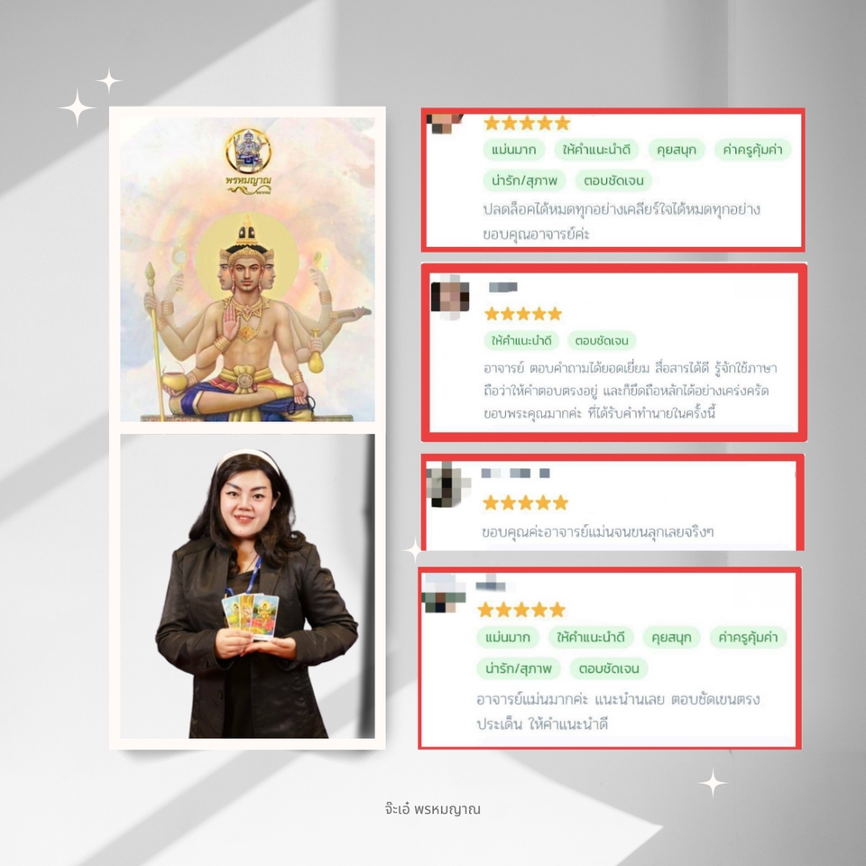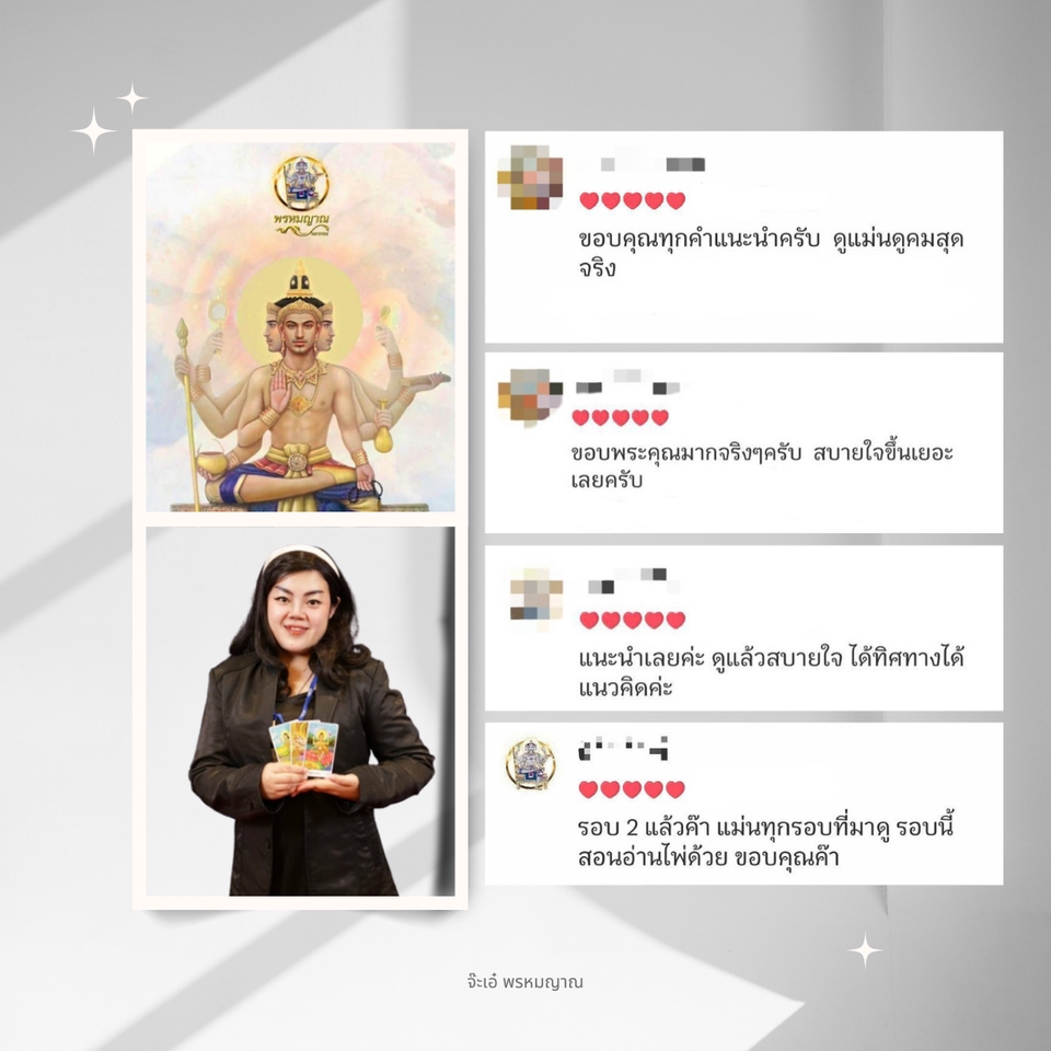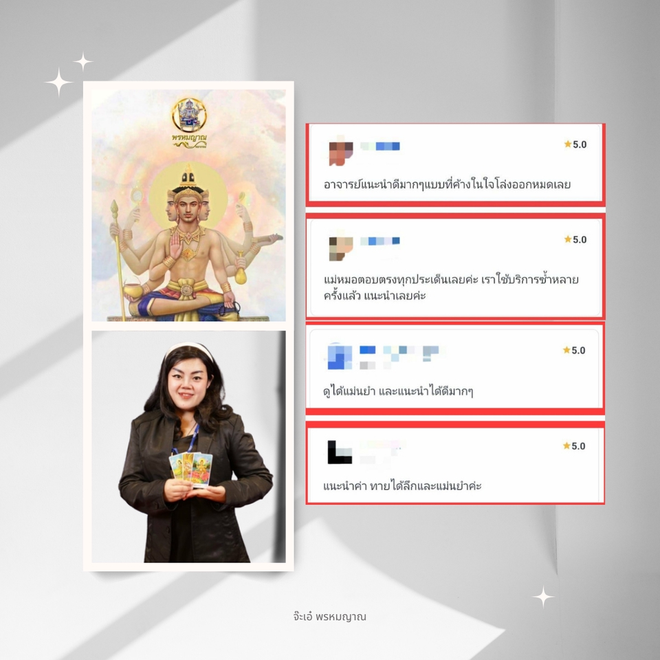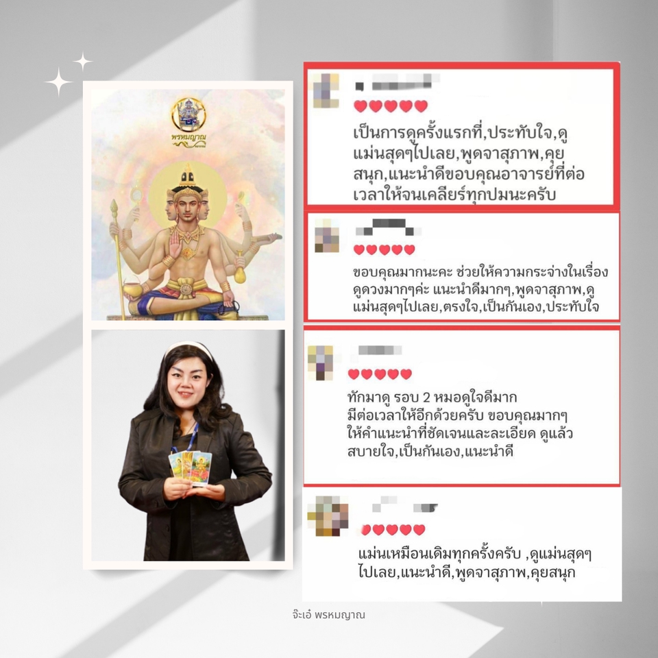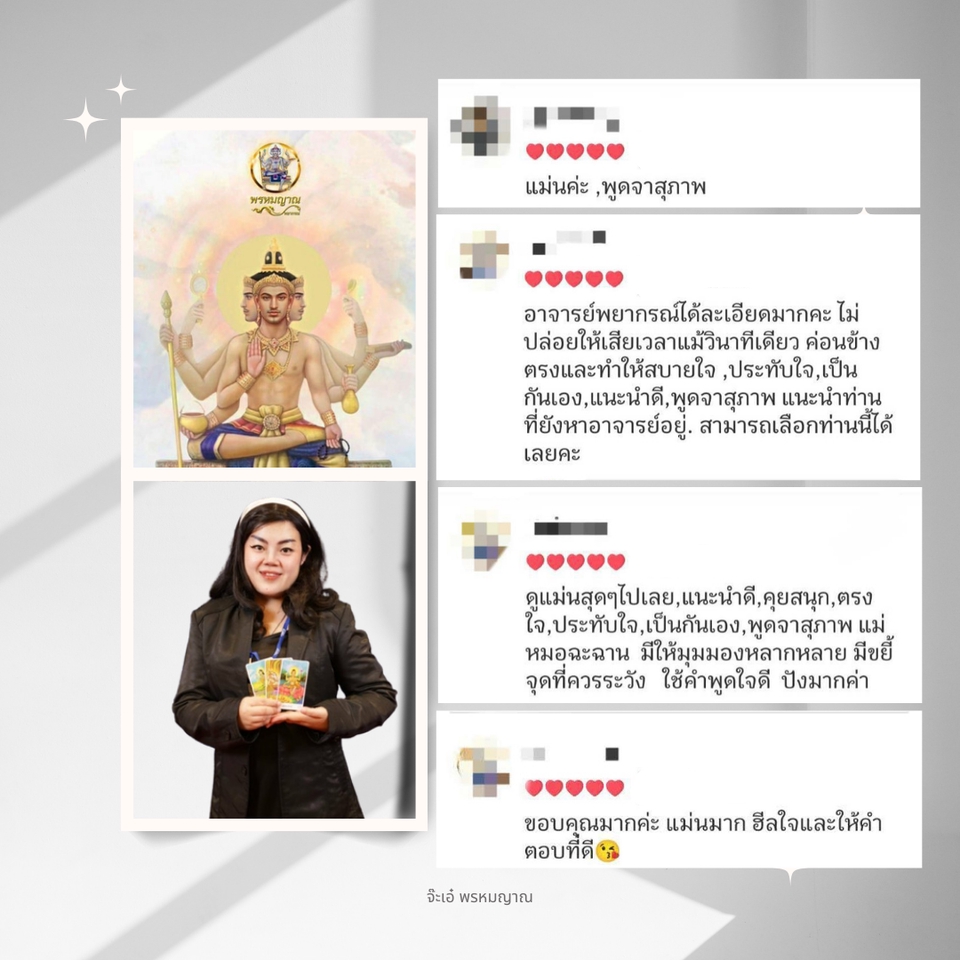 🔮📿 รับปรึกษา และวางแผนชีวิต "ด้วยศาสตร์ศักดิ์สิทธิ์แห่งสยาม" 🔮📿 เปิดดวงด้วยไพ่พรหมญาณ 🔮ทุกคำถามที่ว้าวุ่นอยู่ในใจ ให้ครูไพ่ช่วยไขคำตอบ 🕉️หมอดูแม่นๆ ไม่มีตรงนี้ มีแต่ครูไพ่โคตรแม่น 🙏🙇 ⛔️ไม่รับทำพิธีทุกกรณี ⛔️ไม่มีการเรียกเก็บเงินเพิ่ม ⛔️ไม่เสนอให้เช่าบูชาของขลัง/เสริมเสน่ห์ใดๆ ทั้งสิ้น ✅🙏🔮 รับเพียงค่าบูชาครูไพ่ ตามเพจเกจที่เลือกจองคิวดูดวงมาเท่านั้น ✅ ทุกคำปรึกษา และทุกคำแนะนำจากครูไพ่ รวมถึงรายละเอียดต่างๆ ที่เกี่ยวข้องทั้งหมดของลูกดวง จะถูกเก็บเป็นความลับ ขั้นตอนการทำงาน 1. โปรดระบุคำถามที่ละเอียด และชัดเจน ตามจำนวนคำถามของเพจเกจที่เลือก เพื่อรับคำพยากรณ์ที่ตรงจุดที่สุด 2. หากเป็นเรื่องของความรัก โปรดระบุสถานะความสัมพันธ์ เช่น โสด / แอบรัก/ คนคุย /แฟน /คู่ครอง (ทั้งนิตินัย หรือพฤตินัย) 3. รอรับคำพยากรณ์ผ่าน Fastwork หลังจากส่งคำถาม ภายใน 3 hr.