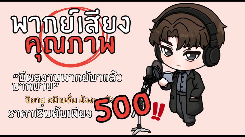 ผมเป็นนักลงเสียงที่มีประสบการณ์กว่า 2 ปีในสายงานพากย์และบรรยาย ใช้ไมโครโฟน Rode NT1 Gen5 และระบบโฮมสตูดิโอมาตรฐานสากล ทีจะได้รับคุณภาพเสียงให้ใส คมชัด และถ่ายทอดอารมณ์ได้ถึงครับ สามารถลงเสียงได้ทุกแบบเลยครับ ไม่ว่าจะเป็น อนิเมชั่น นิยาย มังงะ หนัง