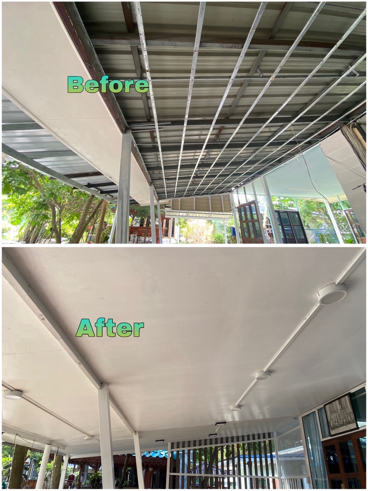 - • รื้อฝ้าเก่า ติดตั้งแผ่นฝ้าใหม่
