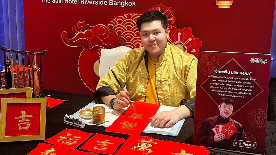 #เหล่าซือเจมส์ รับออกงานอีเว้นท์เขียนพู่กันจีน มีประสบการณ์ด้านการเขียนป้ายมงคลมาไม่ต่ำกว่า 12 ปี ออกงานอีเว้นท์มาแล้วไม่ต่ำกว่า 60 งาน อ.จักรกฤษณ์ เกษกาญจนานุช (เหล่าซือเจมส์) อาจารย์ผู้เชี่ยวชาญด้านศิลปะพู่กันจีน สาขาวิชาภาษาจีน มหาวิทยาลัยเกษตรศาสตร์ ได้รับเกียรติให้เขียนกลอนมงคลพระราชทานบนโคมตรุษจีนแขวนไว้บนซุ้มประตูวงเวียนโอเดียน เยาวราชตลอดปี เชี่ยวชาญในการจัดกิจกรรม Workshop ทั่วประเทศ