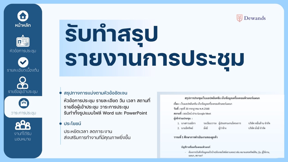 รับทำสรุปรายงานการประชุม สรุปไฟล์เอกสาร จัดทำรายงาน