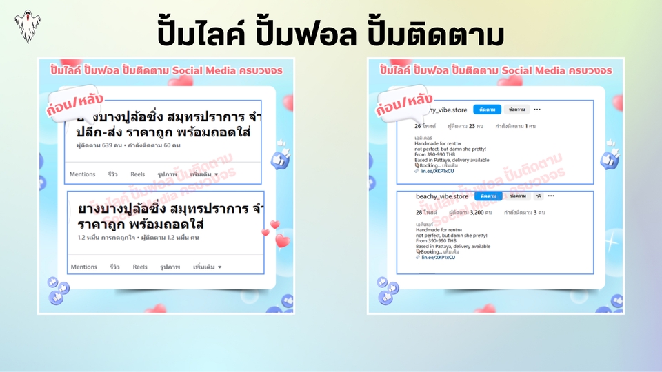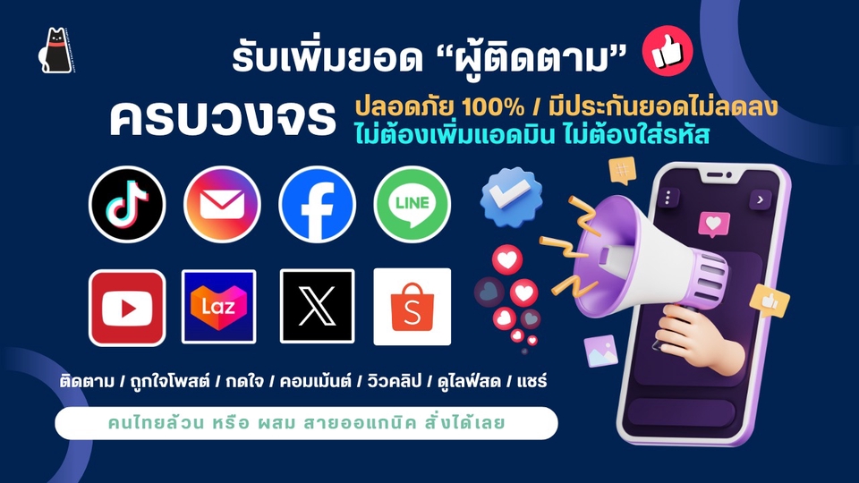 เพิ่มผู้ติดตาม FB TT IG X YT เพิ่มไลค์ เพิ่มวิว หรือบริการอื่นๆ ทุกแพลตฟอร์ม Social Media ครบวงจร