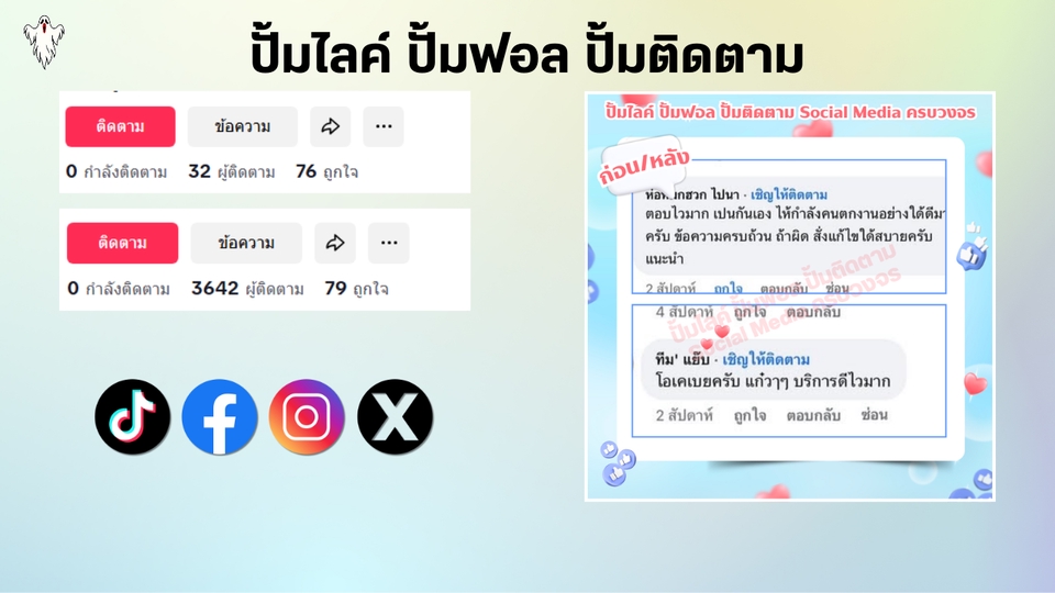 Facebook เพิ่มผู้ติดตาม ไลค์ คอมเม้นท์ แชร์ - ไทย ต่างชาติ