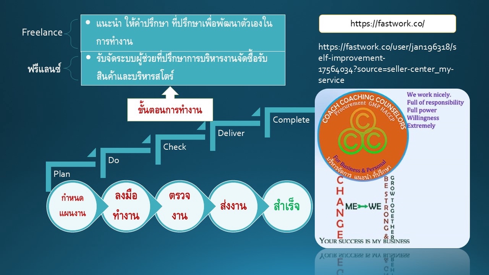 - รับบริหารจัดการระบบและขั้นตอนการทำงานจัดซื้อ รับสินค้า บริหารสโตร์ - กำหนดกลยุทธ วางแผนเป้าหมายการจัดซื้อ และ การเจรจรต่อรองอย่างมืออาชีพ - จัดทำแผนงานและขั้นตอนดำเนินงานสำหรับลดตันทุนการผลิต - รับให้คำแนะนำ ปรึกษา ออกแบบระบบการจัดซื้อด้วยมาตรฐาน GMP HACCP เบื้องต้น - รับทำฟรีแลนซ์เป็นผู้ช่วยนักลงทุน นักบริหาร ในการทำโปรเจค pre-opening rebranding สำหรับโรงแรม โรงงาน องค์กร บริษัทต่างๆ - จัดทำคู่มือการทำงาน - จัดอบรมการจัดซื้อด้วยมาตรฐาน GMP HACCP ขั้นตอนการทำงาน 1. กำหนดวัตถุประสงค์และเป้าหมาย ขอบเขตการทำงาน 2. กำหนดหัวข้อการทำงาน 3. กำหนดรายละเอียดขั้นตอนการทำงาน 4. กำหนดระยะวันและการทำงาน 5. กำหนดระยะวันจัดส่งงาน และ แก้ไขงาน