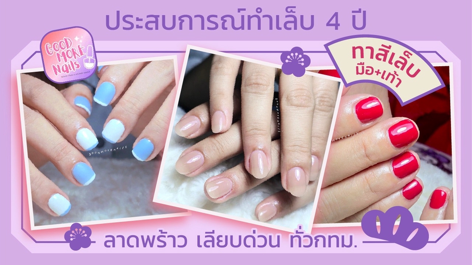 (ทั่ว กทม. ลาดพร้าว-เลียบด่วน) นอกสถานที่ แพคเกจทาสีเล็บเจลมือ+เท้า (สีพื้นไม่รวมดีไซน์)