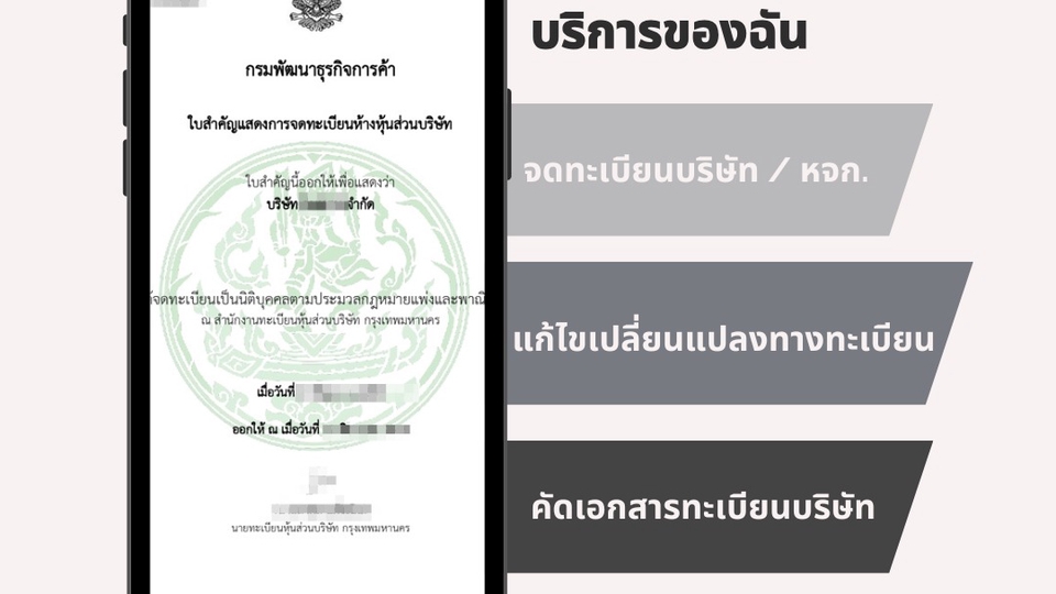 ฿5,000- บริการตรวจสอบและจองชื่อบริษัท - จัดเตรียมข้อมูลการจด - ดำเนินการจดทะเบียน (แบบออนไลน์ สะดวก ง่าย รวดเร็ว)