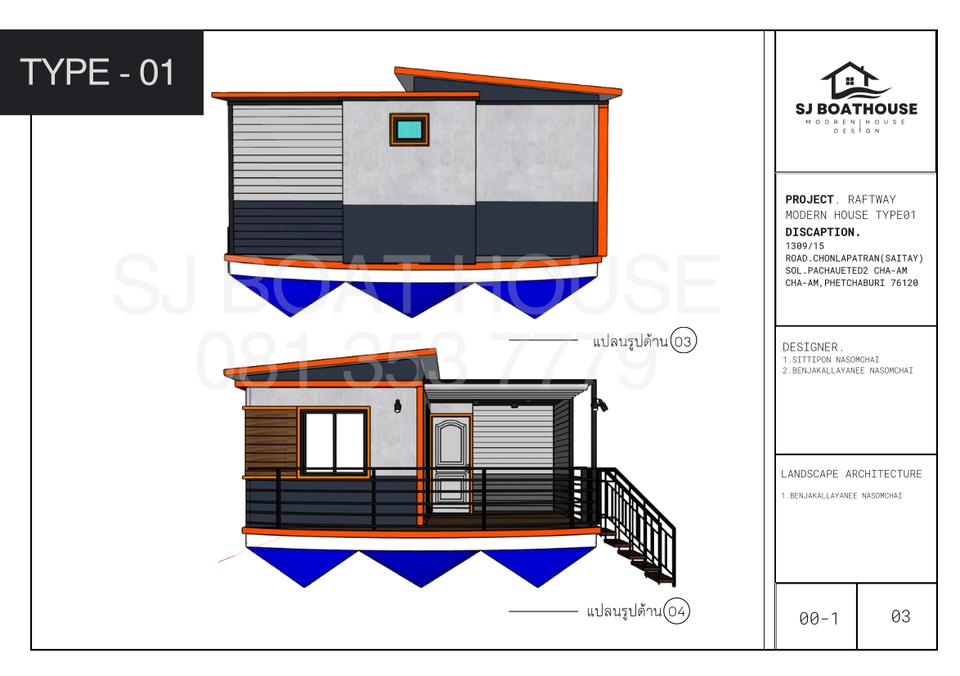 รับออกแบบบ้านน็อคดาวน์/แพลอยน้ำ/บ้านลอยน้ำ แบบครบวงจร