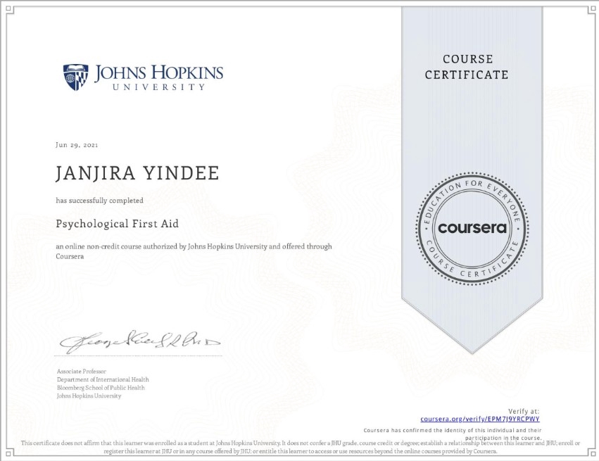 รับเป็นที่ปรึกษา เป็นผู้รับฟัง ไม่ตัดสินเรื่องราวของคุณ รับฟังและช่วยแก้ไข(ถ้าต้องการ) อยากระบายเรื่องส่วนตัว เป็นเพื่อนกินข้าว เป็นเพื่อนไปช่วยเลือกซื้อของ พร้อมเป็นที่ปรึกษาทุกเรื่องของชีวิตคุณ Certificate Psychological First Aid. On behalf of Johns Hopkins University ขั้นตอนการทำงาน 1. แจ้งเรื่องที่อยากคุยหรือต้องการให้ช่วยแก้ไขพร้อมระบุเวลาที่ต้องการ 2. ชำระเงิน 3. เริ่มปรึกษาและรับฟังได้เลย