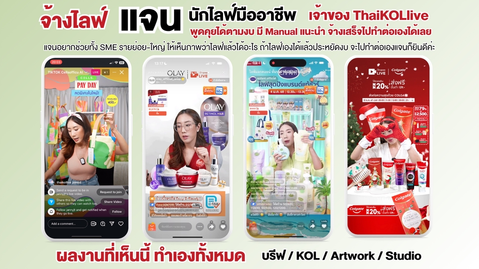 ฿4,999- ไลฟ์ 1.0 ชม. 1 ช่องทาง Shopee / Facebook/ Lazada/ IG/ TikTok *ฟรี Artwork ประกอบไลฟ์ เข้าชมสตูดิโอได้