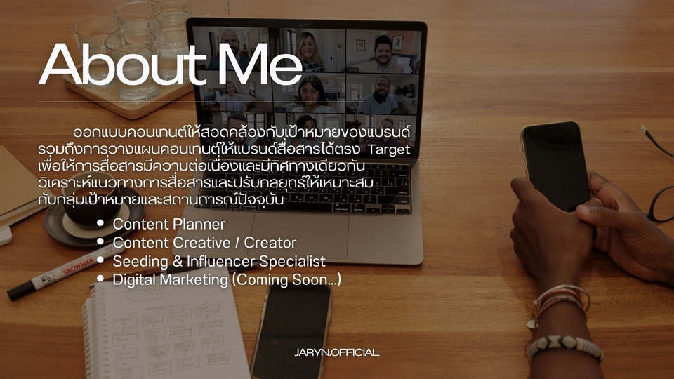 - รับจ้างดูแล Socials Media Plan - รับจ้างจัดหา/ติดต่อ Influencers/KOL - รับเขียนบทความ / Content สินค้าทุกประเภท - รับทำคลิปรีวิวสินค้าทุกประเภท (ต้องทดลองใช้เองจริงๆก่อนเท่านั้น) - รับจ้างทำสไลด์ Presentation - รับจ้างทำ Portfolio