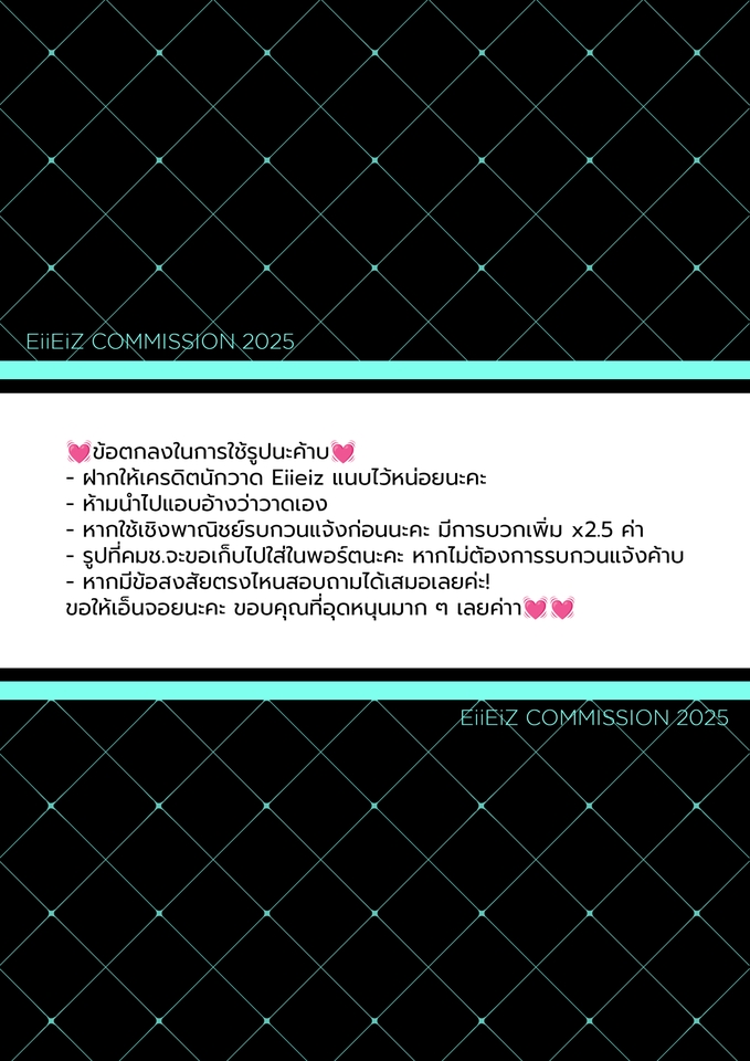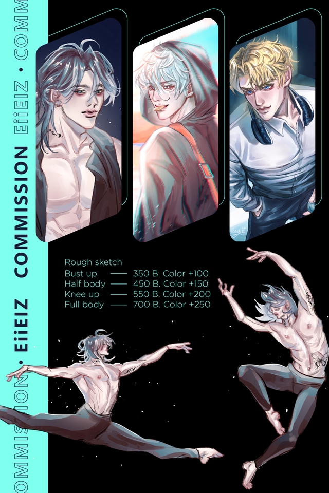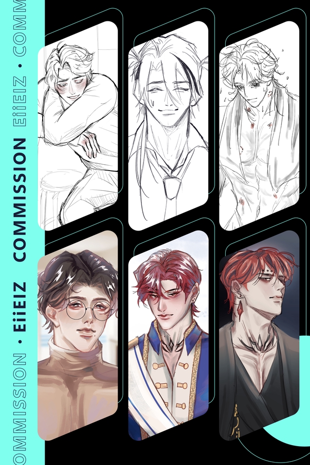 รับวาดรูปตามบรีฟ สไตล์ผู้ชายหล่อ หล่อแบบเว็บตูน มังฮวา เกาหลีผสมญี่ปุ่นและจีน ฟีลๆอนิเมะแต่ไม่อนิเมะจ๋า สามารถวาดเป็นเส้นไม่ลงสี/ลงสี/ทับเส้นได้แล้วแต่ความต้องการ และสามารถวาดแนวเสมือนจริงได้ นามปากกาคือ Eiieiz ขั้นตอนการทำงาน 1. ส่งบรีฟเพื่อประเมินราคาชิ้นงาน 2. ส่งแบบร่างให้แก่คุณลูกค้า 3. ลงสีและส่งผลงานเสร็จ 4. ส่งไฟล์ให้แก่คุณลูกค้า