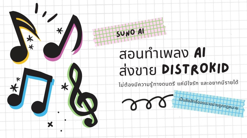 สอนทำเพลง ai ส่งให้ distributor ชื่อ Distrokid ส่งขายแพลตฟอร์มฟังเพลงทั่วโลก เป็นลิขสิทธิของเจ้าของเองอย่างถูกกฎหมาย EP:1 สอนแต่งเนื้อเพลงจาก chat gpt,cloude.ai,suno EP:2 สอน generate เพลงจาก suno EP:3 สอนทำ mastering เพลงจาก bandlab EP:4 สอน ส่งเพลงให้ Distrokid เพื่อจำหน่ายทั่วโลก ขั้นตอนการทำงาน 1. สอนประเภทของเพลง 2. สอนเจนเนื้อร้องจาก ai 3. สอนทำโครงสร้างเพลงจาก ai 4. สอนเจนเพลงและดนตรีจาก suno 5. สอน mastering เพลงจาก banlab 6. สอนส่งเพลงให้ distrokid เพื่อจำหน่าย ประมาณ 30 แพลตฟอร์มเพลงทั่วโลก 7. สอนตั้งค่ารับเงิน 8. สอนการเปิดช่อง Youtube เชื่อมช่องอัตโนมัติ