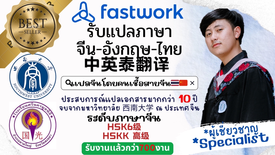 🏆คนไทยเชื้อสายจีน(华裔)🇨🇳🇹🇭 🏆ผ่านการสอบชิงทุน Confucius Institute Scholarship(CIS) 🏆เรียนต่อประเทศจีนในระดับปริญญาตรี(西南大学) 🏆พูดจีนตั้งเเต่เด็กจนโต ทำให้เข้าใจผู้คนเเละความคิดของคนจีนเป็นอย่างดี 🏆ผ่านการสอบวัดระดับ HSK6/HSKK advanced✨✨✨✨✨ 🏆ทำงานในบริษัทจีนเเละงานด้านอุตสาหกรรมไทยจีน 🏆มีประสบการณ์ทำงานเกี่ยวกับภาษาจีนกว่า 10ปี 🏆สามารถ“ฟัง พูด อ่าน เขียน”ได้อย่างชำนาญ