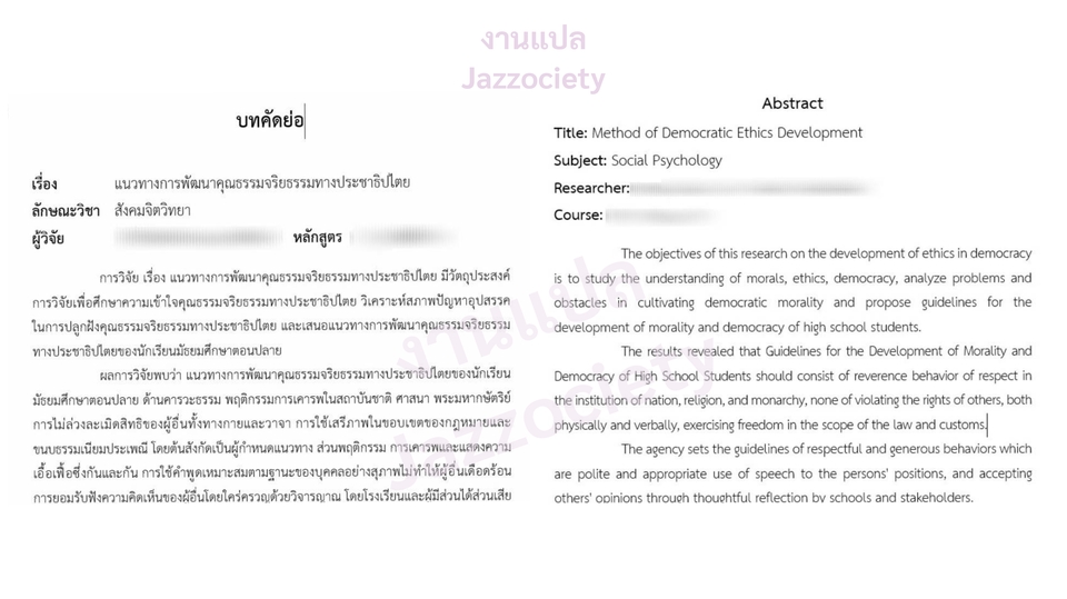 แปลบทคัดย่อ เอกสาร อังกฤษ-ไทย / ไทย-อังกฤษ