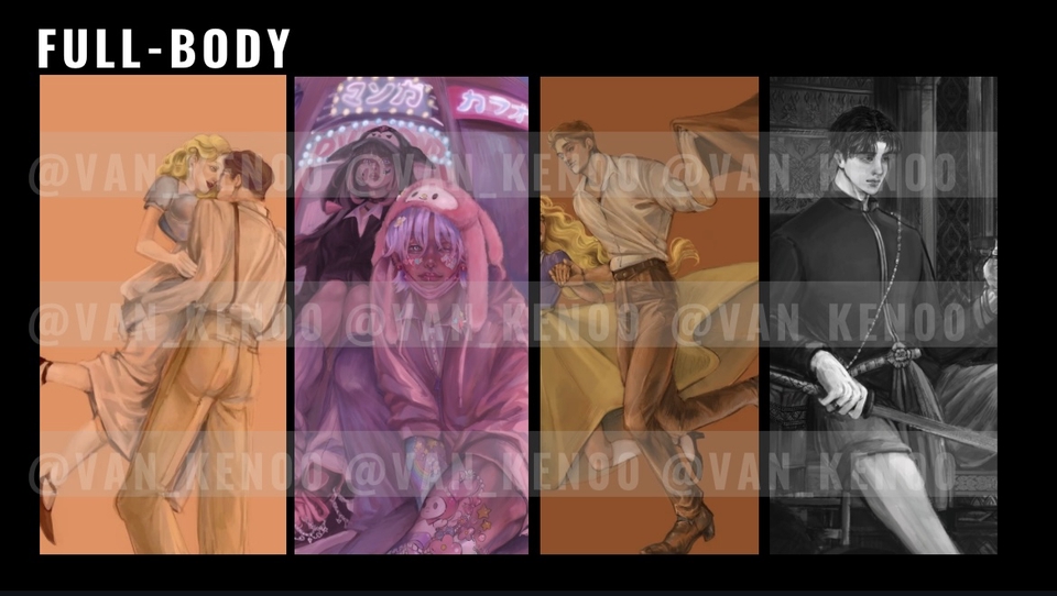฿500ลักษณะงาน: ภาพเน้นลายเส้นชัดเจน, ไม่เน้นแสงเงาหรือรายละเอียดมาก, เลือกได้ทั้งเส้นรัฟและตัดเส้น *ราคาต่อหนึ่งตัวละคร หากเพิ่มตัวละ 300* (ระยะเวลาทำงาน 3-5 วัน)