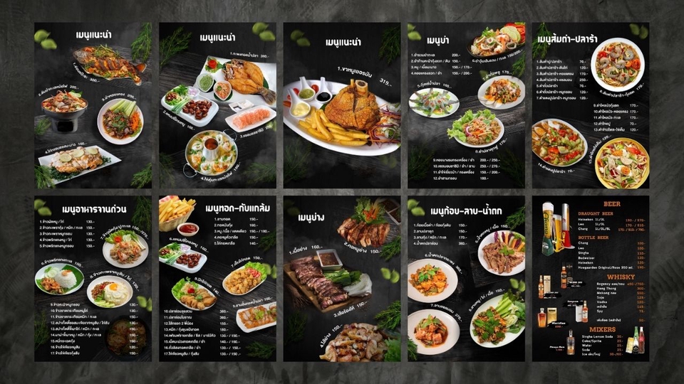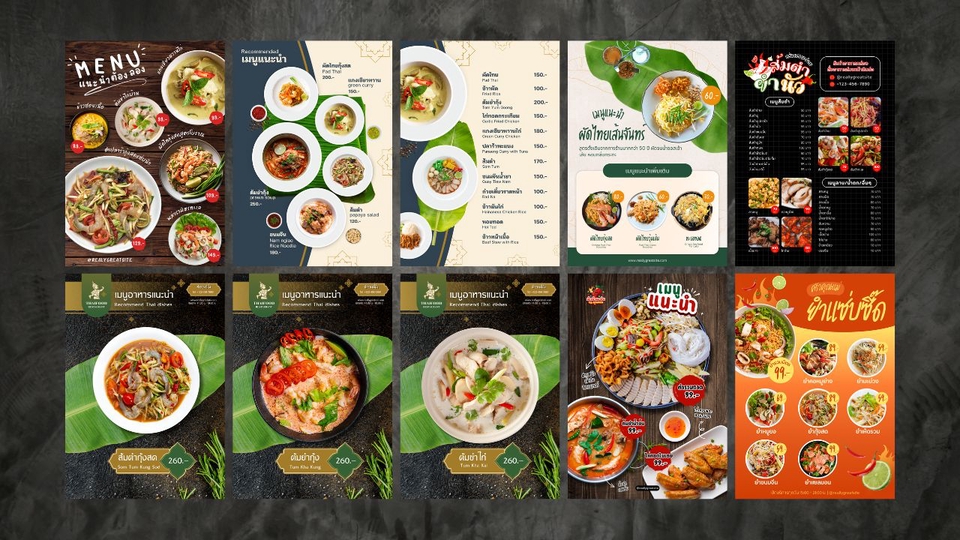 รับออกแบบเมนูอาหาร สื่อประชาสัมพันธ์ต่าง ๆ โปรโมชั่น งานใบปลิว โบรชัวร์ แผ่นพับ นามบัตร การ์ด ป้าย