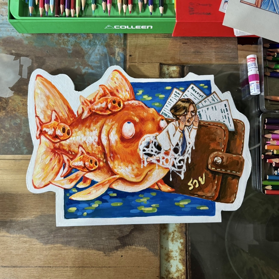 รับจ้างทำงานศิลปะวาดภาพสีน้ำมัน สีอะคริลิก และอีกหลากหลายเทคนิค ลักษณะผลงานแบบตีความโจทย์จากลูกค้า หรือลอกตามแบบของลูกค้าที่มีให้