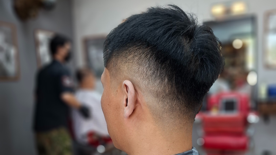 เปลี่ยนลุคให้ดูคมเข้มด้วยทรง Mid drop fade งานเฟดเนี๊ยบๆ เก็บรายละเอียดไล่ระดับอย่างมืออาชีพ ปรับรูปทรงให้เข้ากับสไตล์และโครงหน้าของแต่ละคน เพื่อลุคที่ดูสะอาดตาและทันสมัย ขั้นตอนบริการ: 1. วิเคราะห์รูปหน้าและเส้นผม 2. ออกแบบทรงผมและเริ่มตัด 3. เก็บรายละเอียดงานเฟดให้คม 4. เซตผมและจัดแต่งทรง